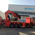 2200全折特点: 一、整车自重33吨比同行的轻5吨 二、4米吊55吨,同行的2000只能吊45吨。 三、整车高度低只有3.5米,同行高度3.75米。 四、一变副2个油缸更有力 五、配5轴底盘整车公告50吨,最关键还能拉17吨货哦