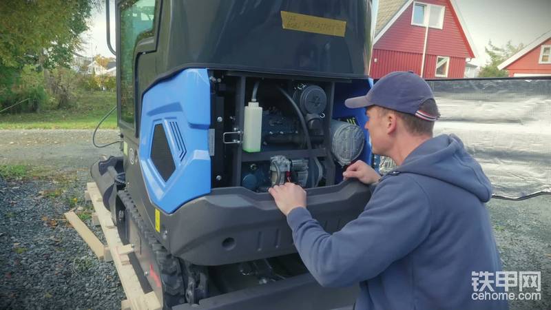 开箱时他颇感惊喜:机器附带的设备看起来相当扎实。他本想把机器从箱子里弄出来,却发现箱子的门在另一侧,而且箱体异常“顽固”。折腾一番后他终于钻了进去,映入眼帘的是一台VOT品牌的机器,正如他要求的那样搭载了久保田发动机。