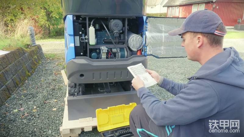 不过很快他就发现机器几乎没柴油了,四处寻找加注口后才发现位置在另一侧。在挪威,他加的是“染色柴油”——这种油更便宜,但不能用在公共道路上,仅适用于拖拉机、挖掘机等设备,厂家加了颜色方便监管。加满后他做了个油耗测试:上次加5升居然跑了7小时,这次加15升估计能跑20小时,油耗低得离谱!更贴心的是,燃油耗尽时机器会自动停机,还有个小红灯提示。
