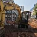 60机都随便玩了 我们这边二层房子都小挖机拆的